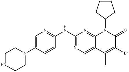 中文名稱:6-溴-8-環(huán)戊基-5-甲基-2-((5-(哌嗪-1-基)吡啶-2-基)氨基)吡啶并[2,3-d]嘧啶-7(8H)-酮